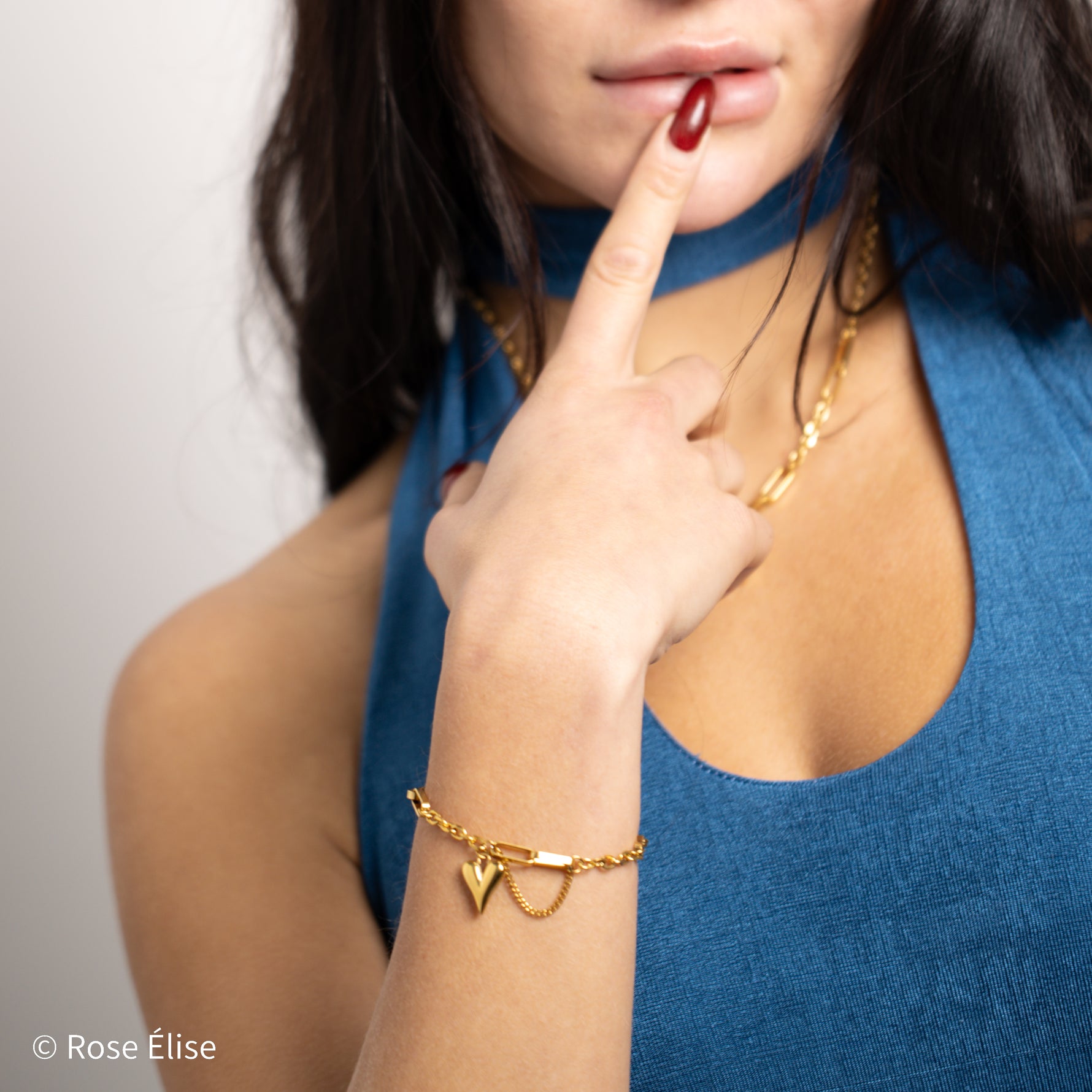 Part of our exclusive Bellezza collection, this bracelet captures timeless beauty with its elegant heart charm. The mixed chain design adds contemporary sophistication, while the heart pendant brings a touch of romance. Perfect for those who appreciate sophisticated jewelry that combines luxurious materials with modern design. The waterproof construction ensures lasting beauty and worry-free everyday wear.