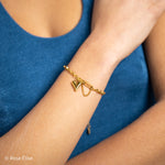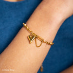 Introducing the Bellezza 18k Gold Heart Charm Bracelet, a sophisticated statement piece that brings romantic elegance to your everyday style. Featuring a mixed chain design with an elegant heart charm and delicate chain accent, this bracelet is truly captivating.