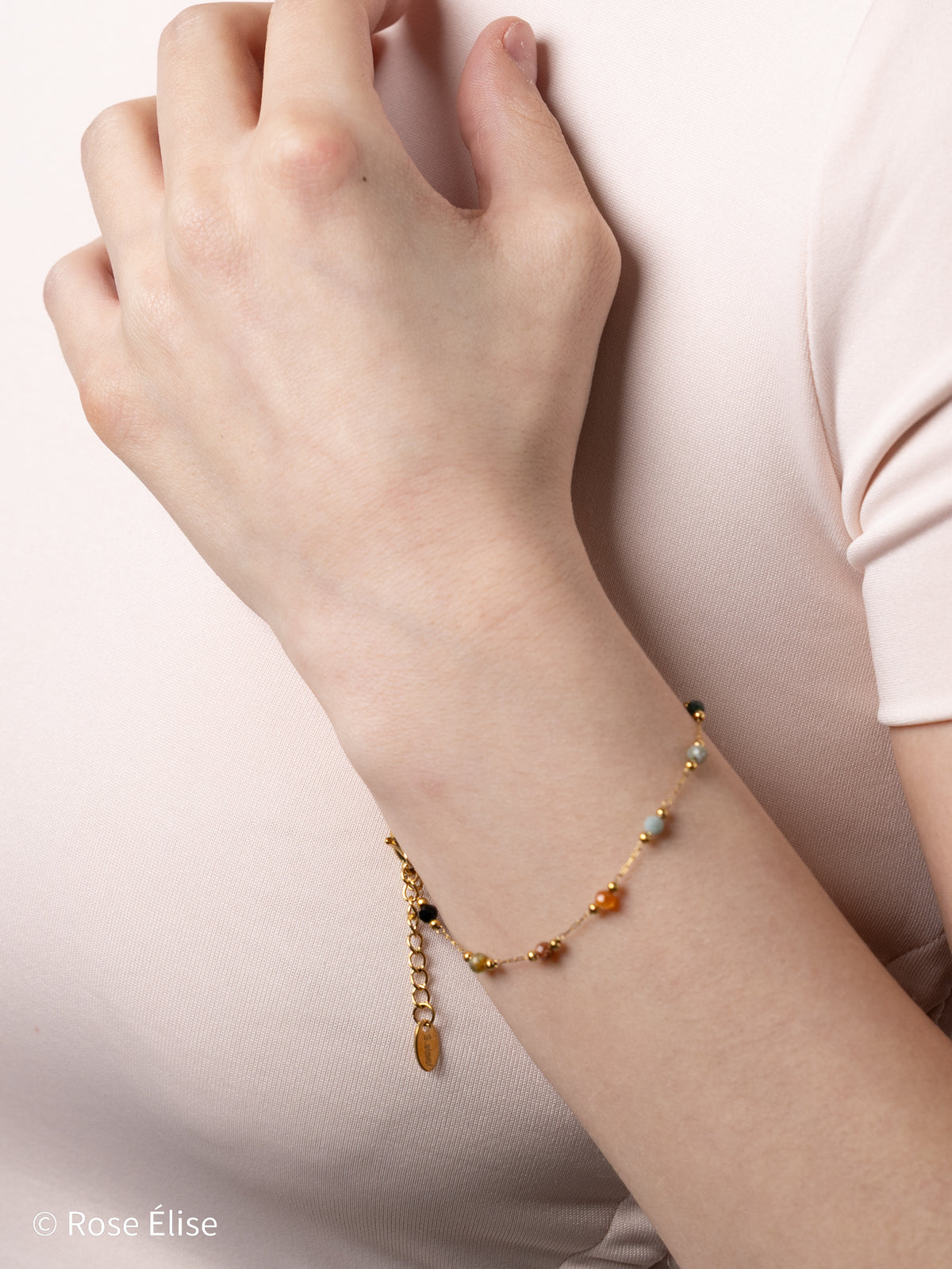 Part of our exclusive Gemma collection, this bracelet captures nature's beauty with its colorful gemstone beads. The natural stones are carefully selected and evenly spaced along the delicate chain, creating an organic, sophisticated look. Each piece is unique due to the natural variations in the stones. Perfect for those who appreciate jewelry that combines luxurious materials with the beauty of natural gemstones. The waterproof construction ensures lasting beauty and worry-free everyday wear.