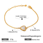 Part of our exclusive Irisé collection, this bracelet captures shimmering beauty with its pearlescent heart charm. The name Irisé (French for "iridescent") reflects the pearlescent glow and luminous quality of the heart. The pearlescent heart is carefully framed with scalloped gold edges and sits beautifully on the delicate chain, creating an ethereal, sophisticated look. Perfect for those who appreciate jewelry that combines luxurious materials with natural, timeless beauty. The waterproof construction ensures lasting beauty and worry-free everyday wear.