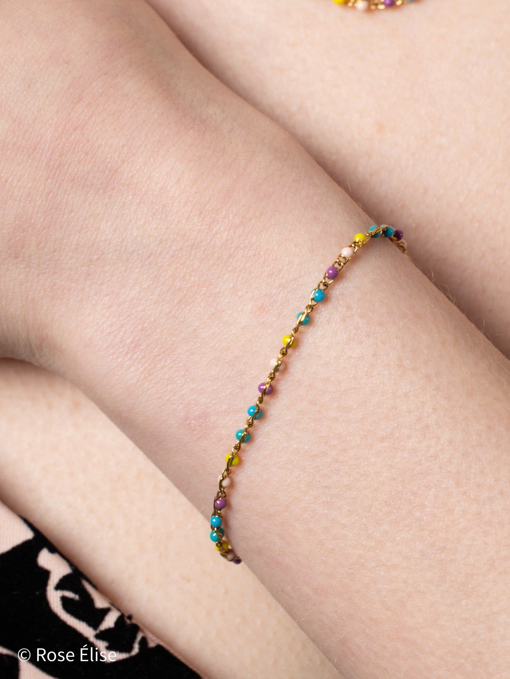 Part of our exclusive Vivace collection, this bracelet captures joyful beauty with its prismatic enamel beads. The name Vivace (Italian for "vivid" or "lively") reflects the vibrant colors and cheerful spirit of the piece. The enamel beads are carefully selected and evenly spaced along the delicate chain, creating a playful, sophisticated look. Perfect for those who appreciate jewelry that combines luxurious materials with vibrant, joyful design. The waterproof construction ensures lasting beauty and worry-free everyday wear.