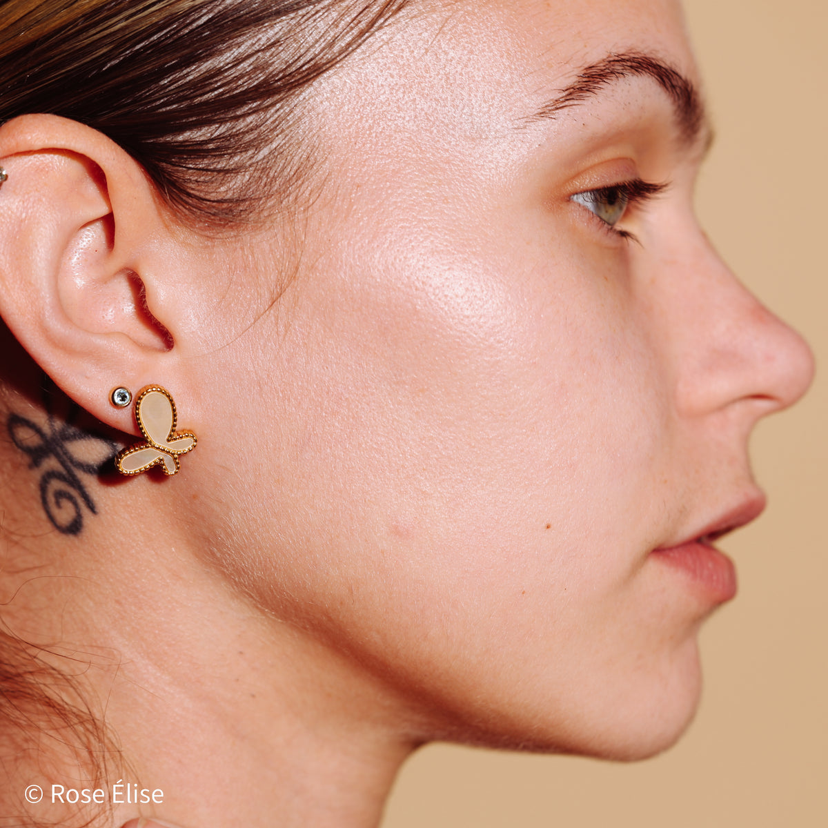- Design: Butterfly studs (approximately 2cm x 1.6cm / 0.78" x 0.63")