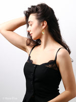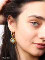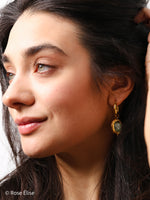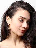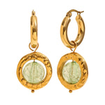 Jade - 18k Gold Hammered Frame Green Crystal Hoop Earrings