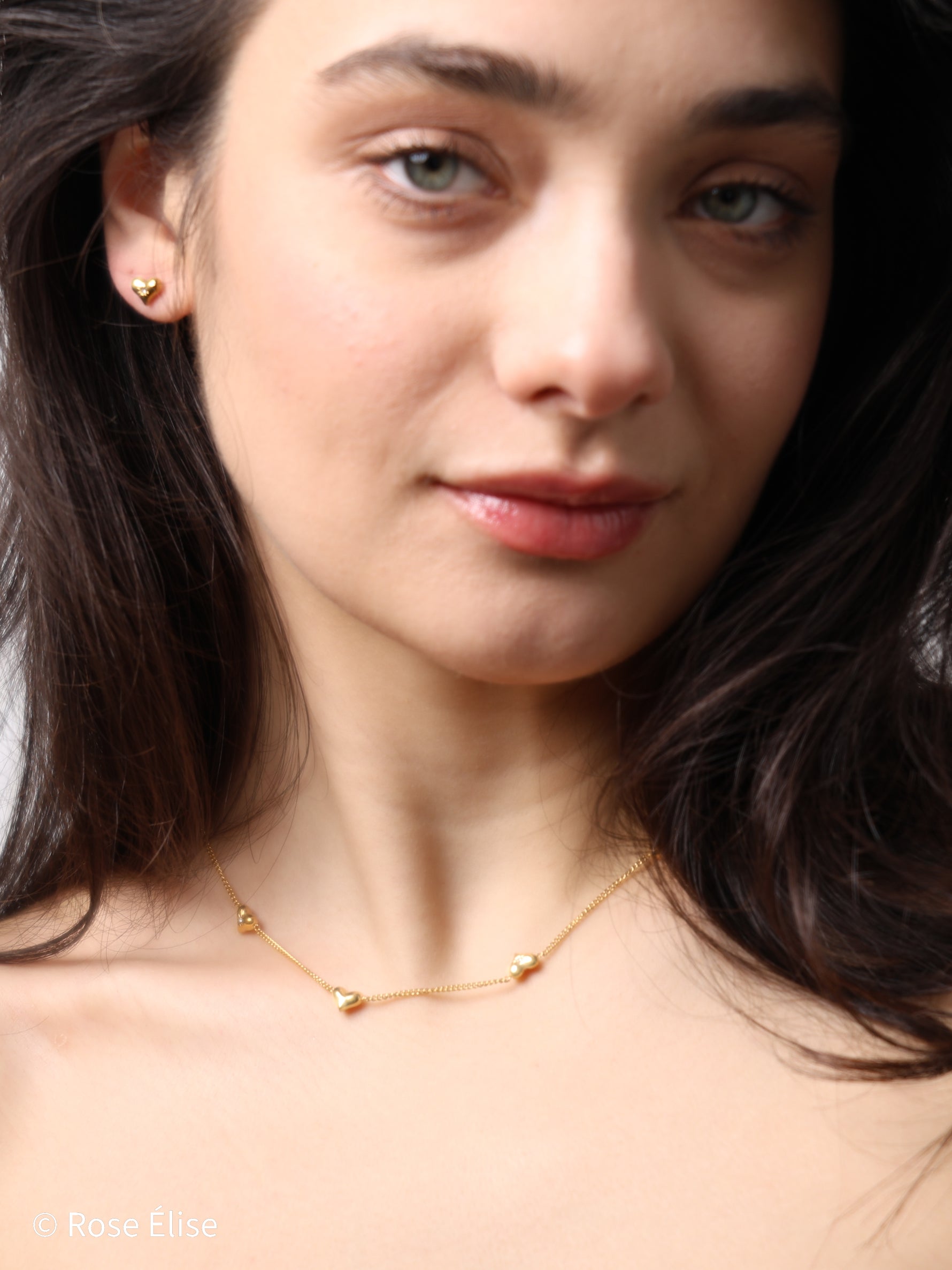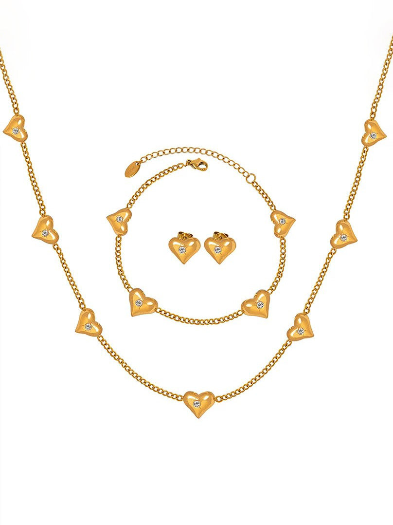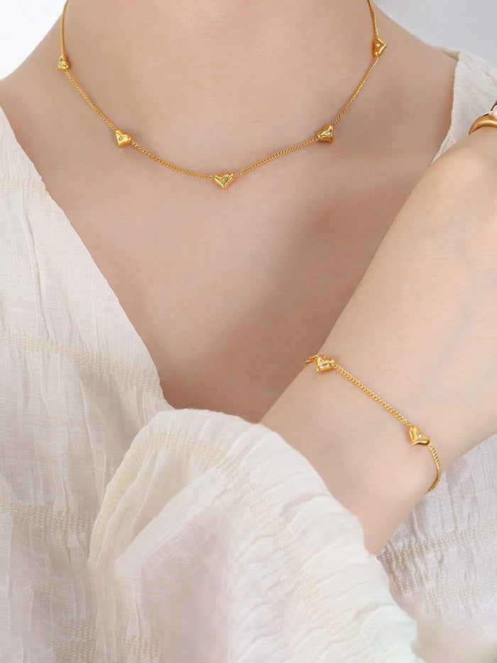 - Heart Charms: Polished gold hearts with crystal center accents