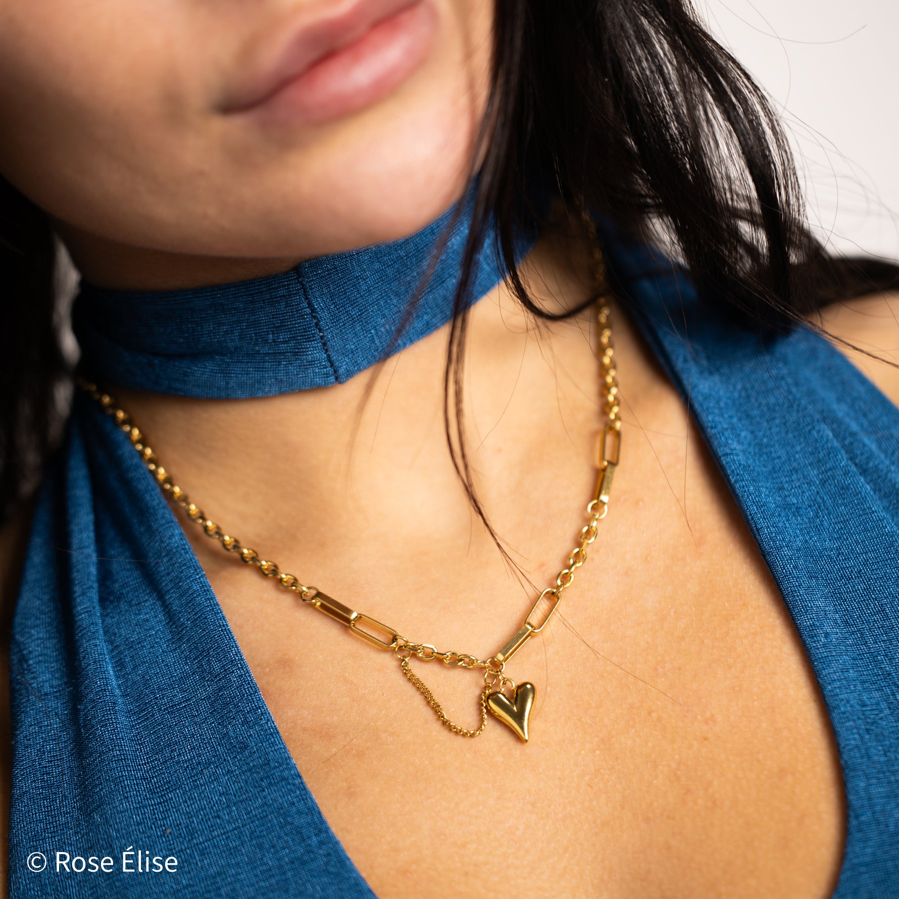 Part of our exclusive Bellezza collection, this necklace captures timeless beauty with its elegant heart charm. The mixed chain design adds contemporary sophistication, while the heart pendant brings a touch of romance. Perfect for those who appreciate sophisticated jewelry that combines luxurious materials with modern design. The waterproof construction ensures lasting beauty and worry-free everyday wear.