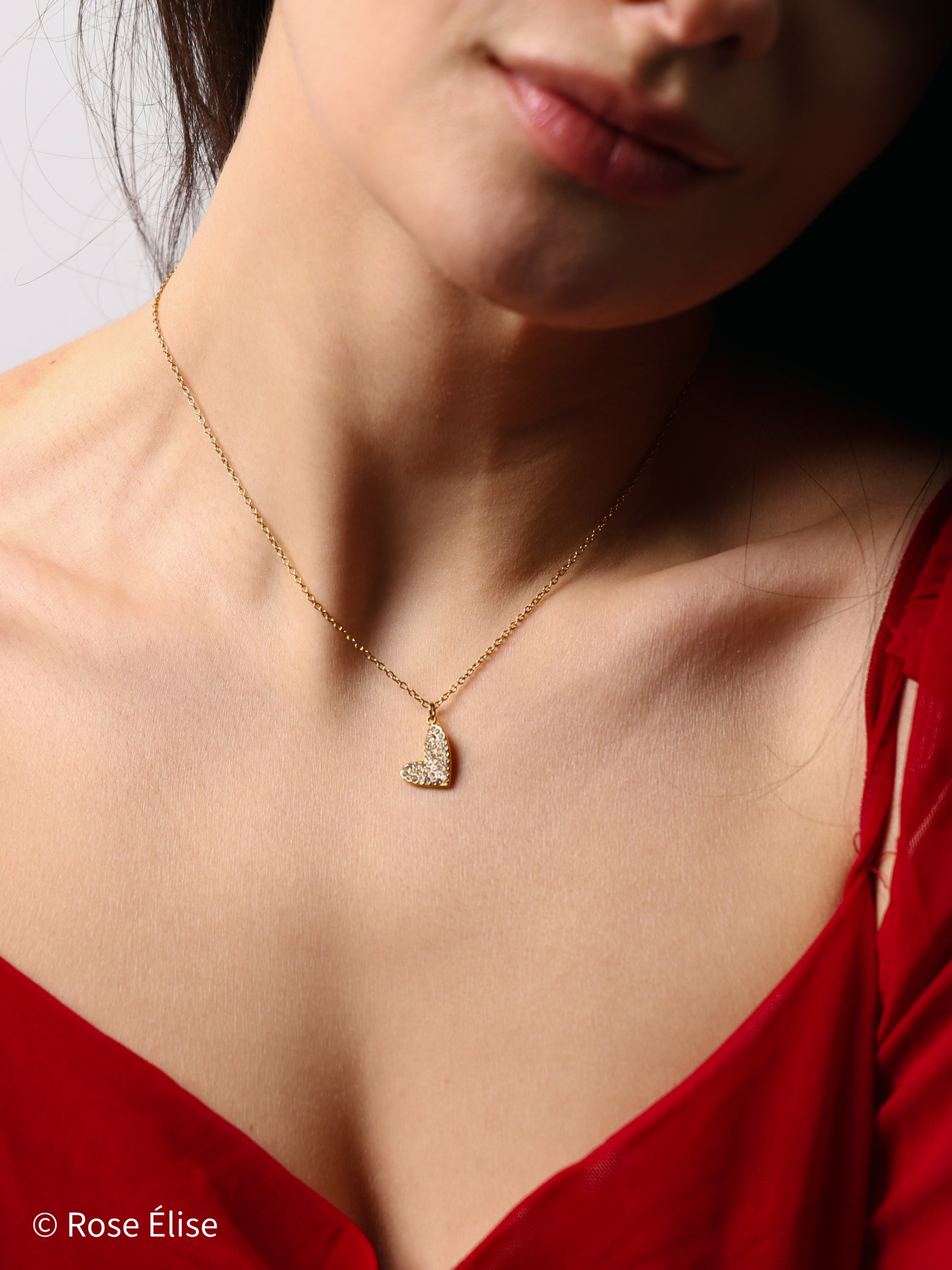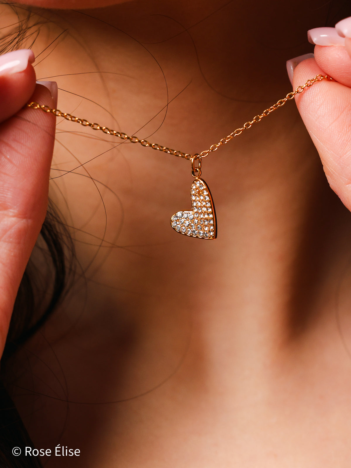 Part of our exclusive Étincelle collection, this necklace captures radiant beauty with its pavé crystal heart. The name Étincelle (French for "sparkle") reflects the brilliant shimmer of the crystal-covered heart. The heart pendant is meticulously set with pavé crystals that catch and reflect light beautifully, creating a sophisticated, glamorous look. Perfect for those who appreciate jewelry that combines luxurious materials with dazzling, timeless design. The waterproof construction ensures lasting beauty and worry-free everyday wear.