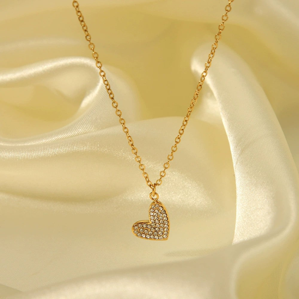 Étincelle - 18k Gold Pavé Crystal Heart Necklace