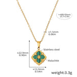 Part of our exclusive Verdant collection, this necklace captures the essence of natural elegance with its vibrant malachite centerpiece and intricate gold framework. The four-leaf clover design symbolizes luck and prosperity, while the natural stone patterns make each piece unique. The adjustable chain ensures a perfect fit, and the waterproof design means worry-free everyday wear.
